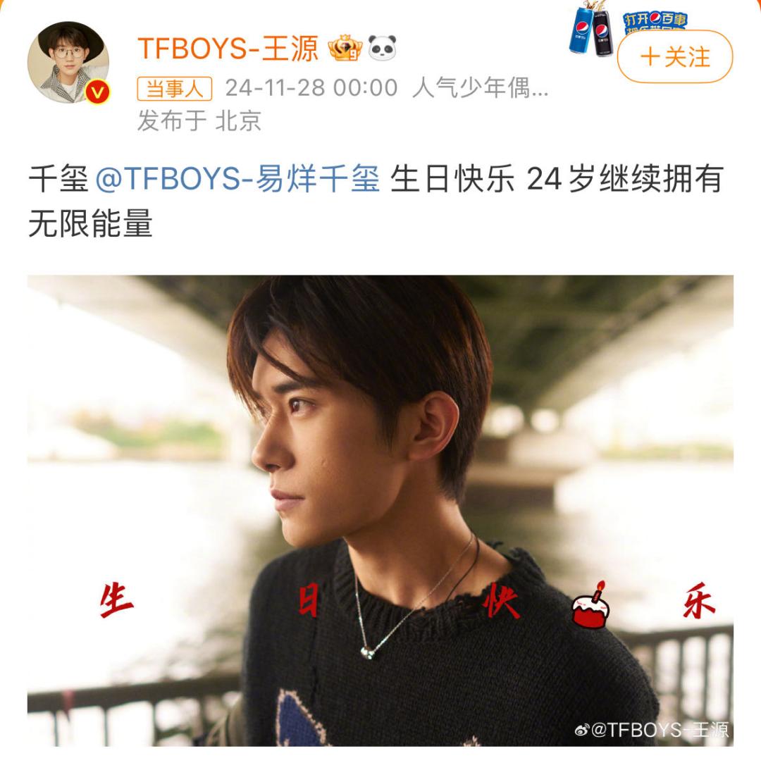 热搜第一!易烊千玺迎来24岁生日,王俊凯、王源卡零点送祝福!