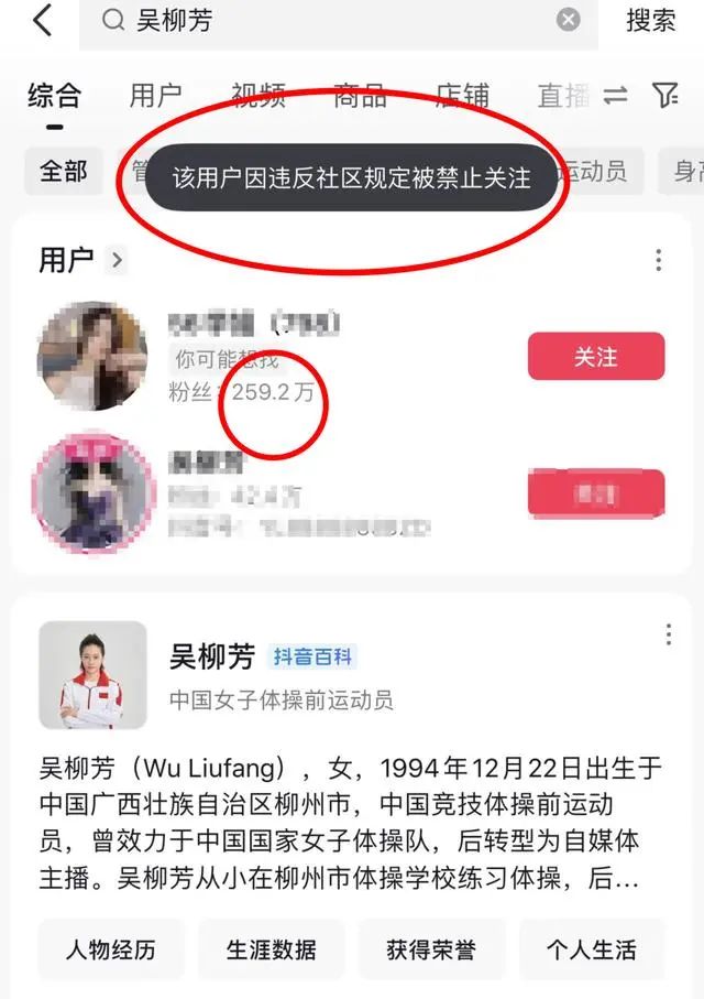 11月24日晚,记者注意到,前体操运动员吴柳芳的社交平台账号已经被平台设置为禁止关注。提示为:该用户因违反社区规定被禁止关注。且该账号的认证信息也无法查看。该账号下,吴柳芳身着运动员服装拍摄的置顶视频也不见了。