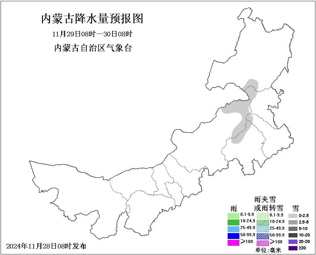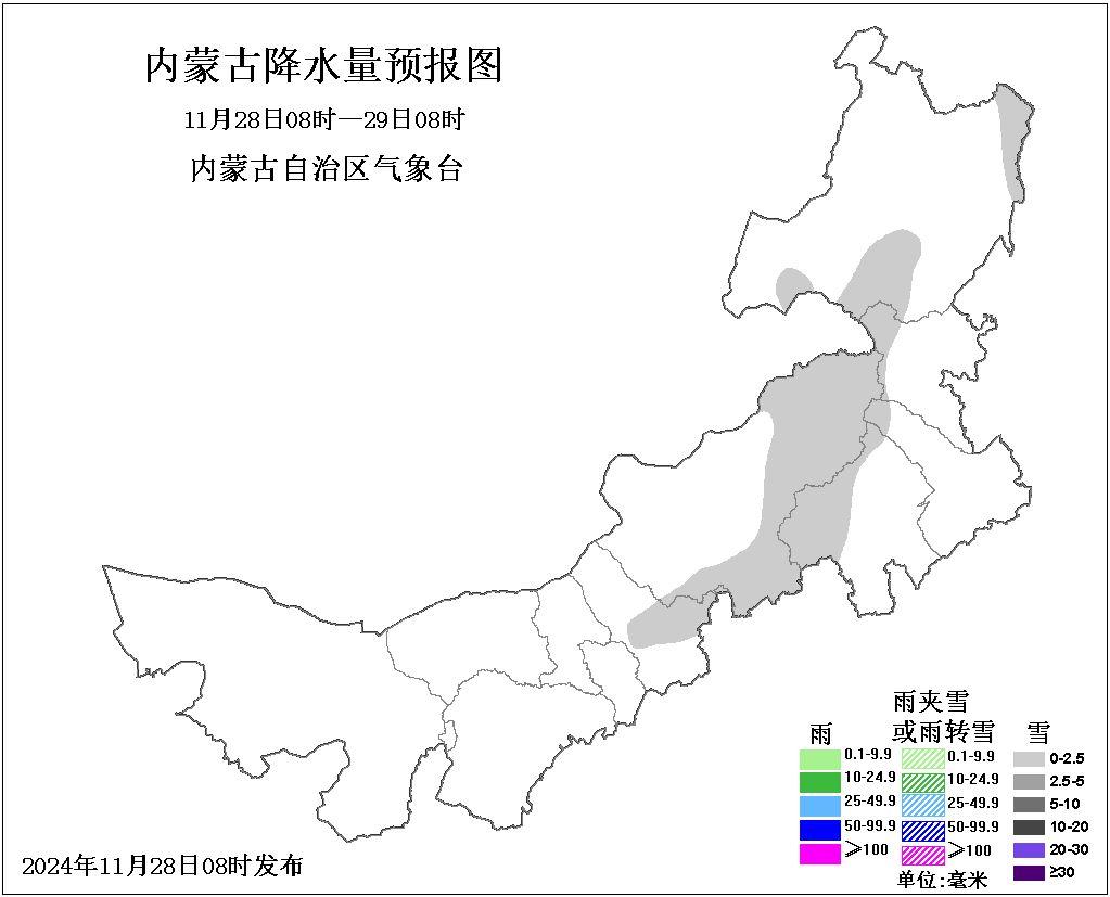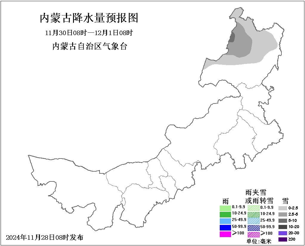 今天(11月28日),内蒙古天气状况较好,中东部大部地区多云间晴,部分地区有小雪。明天,中部偏东、东北部地区有小雪,其余地区晴间多云。后天,东北部地区多云,大部地区有小到中雪,局地有大雪,其余地区晴间多云。未来三天全区大部风力较大,有4、5级短时6、7级大风,今天更有局地8级西北风,西部部分地区还伴有沙尘天气。公众需注意大风带来的安全隐患,做好防风措施。