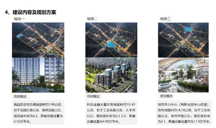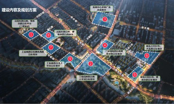 在合作资源上,项目规划以会展中心及南广场改造提升、新建高端居住和商务办公为主。完成会展中心改造,总建面约30万平方米,引入体育、电竞等业态。规划产业用地3公顷,总建面9万平方米,引入互联网、科技金融等产业。规划居住用地11.47公顷,总建面约26万平方米。