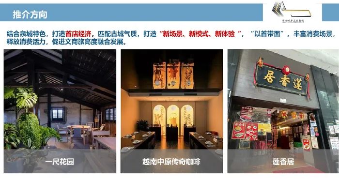 2024年10月1日,古城(明府城片区)城市更新项目首开院落及街巷正式运营。这次推介招商,古城(明府城片区)城市更新项目运营方合作资源可提供约10万平方米产业空间载体,以特色泉水宅院、传统民居和历史风貌建筑为主。芙蓉街-百花洲片区2025年可提供80余组院落。项目围绕“济南古城,天下泉城”的整体定位招引和落位优质品牌商家,结合泉水、街巷、院落、文化和产业5条主线,拟引入品质餐饮、艺术体验、精品零售、休闲娱乐、服务配套、文化复合和旅居等业态。