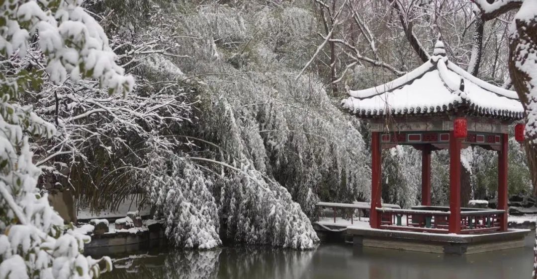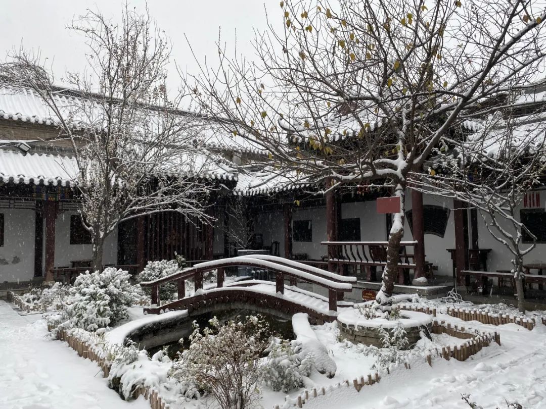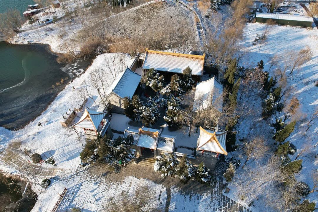 当历史和自然融合便有了眼前的景致,五贤祠、亭台楼阁,千百年多少人在这看过雪。