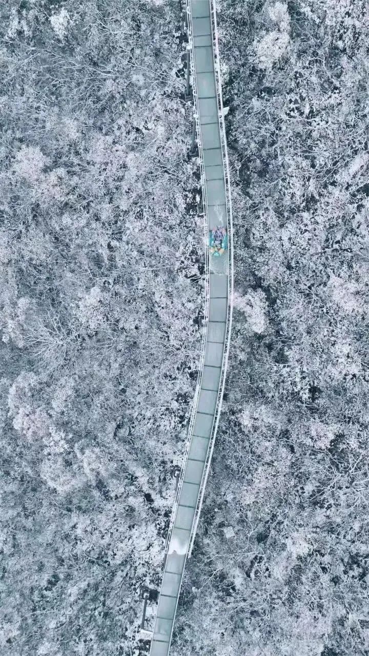 下过雪的「潭溪山」,像一幅静谧的雪中山景图。沿途的雾凇美景,是大自然给予冬季潭溪山的珍宝,花草树木都被包裹成冰凌,晶莹剔透。