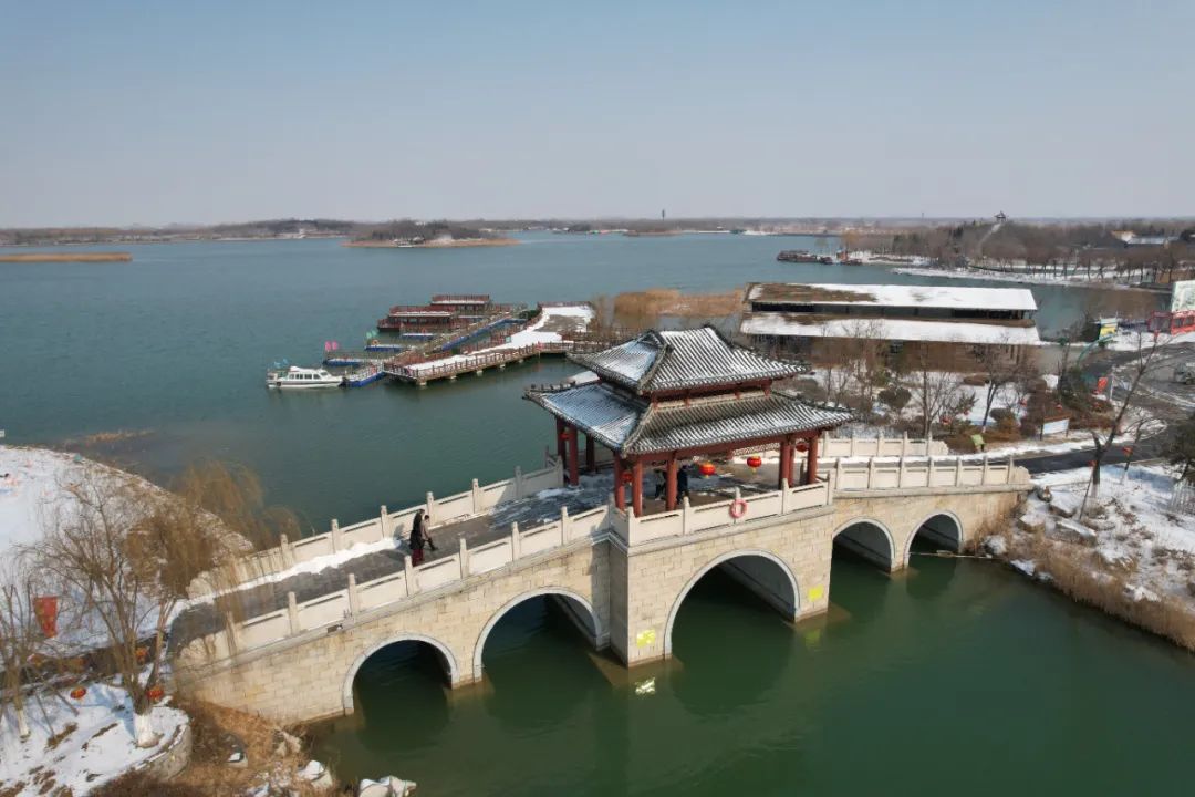 当「马踏湖」与皑皑白雪相遇,一幅绝美山水画徐徐展开,安逸、宁静,让人心旷神怡。
