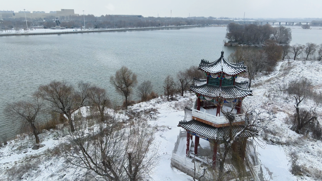下雪时,一定要到「海岱楼」赏雪。登上海岱楼,俯瞰整个齐盛湖,看着雪花一片一片凋落在树梢、湖面,看齐盛湖公园一点一点变成白色,银装素裹、水面氤氲,霎那间,像是一幅画,而自己变成了登上楼阁,吟诗作对的古人。