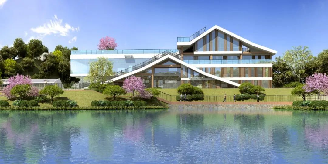 沿着太和山绿道漫步,在水仓里路以南,一座四层楼的落地玻璃建筑屹立的水塘边,在阳光的照耀下熠熠生辉,几位工人正在外面搬运东西,这就是太和山绿道驿站,目前该项目已完工,正进行周边绿化等扫尾工作。