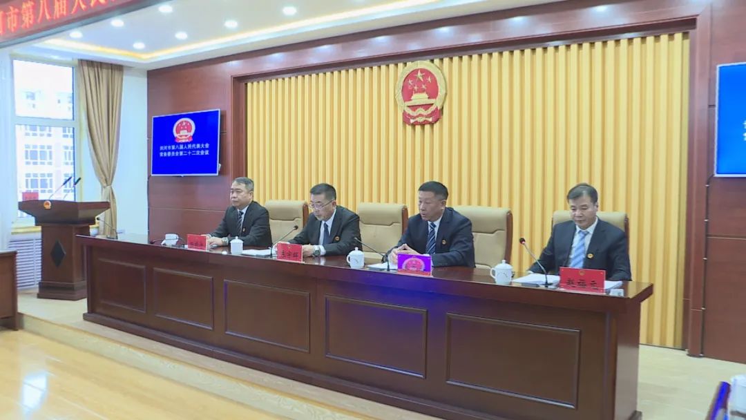 11月28日,市第八届人民代表大会常务委员会召开第二十二次会议,学习习近平总书记在《求是》杂志上发表的文章《促进高质量充分就业》,听取和审议相关工作报告,并进行人事任免。