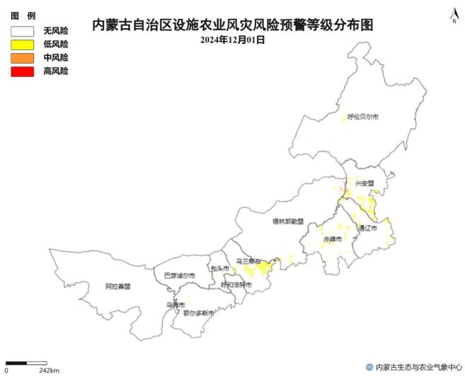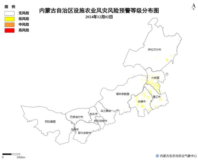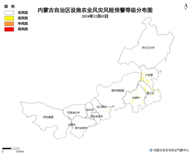 △图7 12月3日内蒙古地区设施农业大风灾害风险预警等级分布图原标题:《内蒙古两部门联合发布预警!》