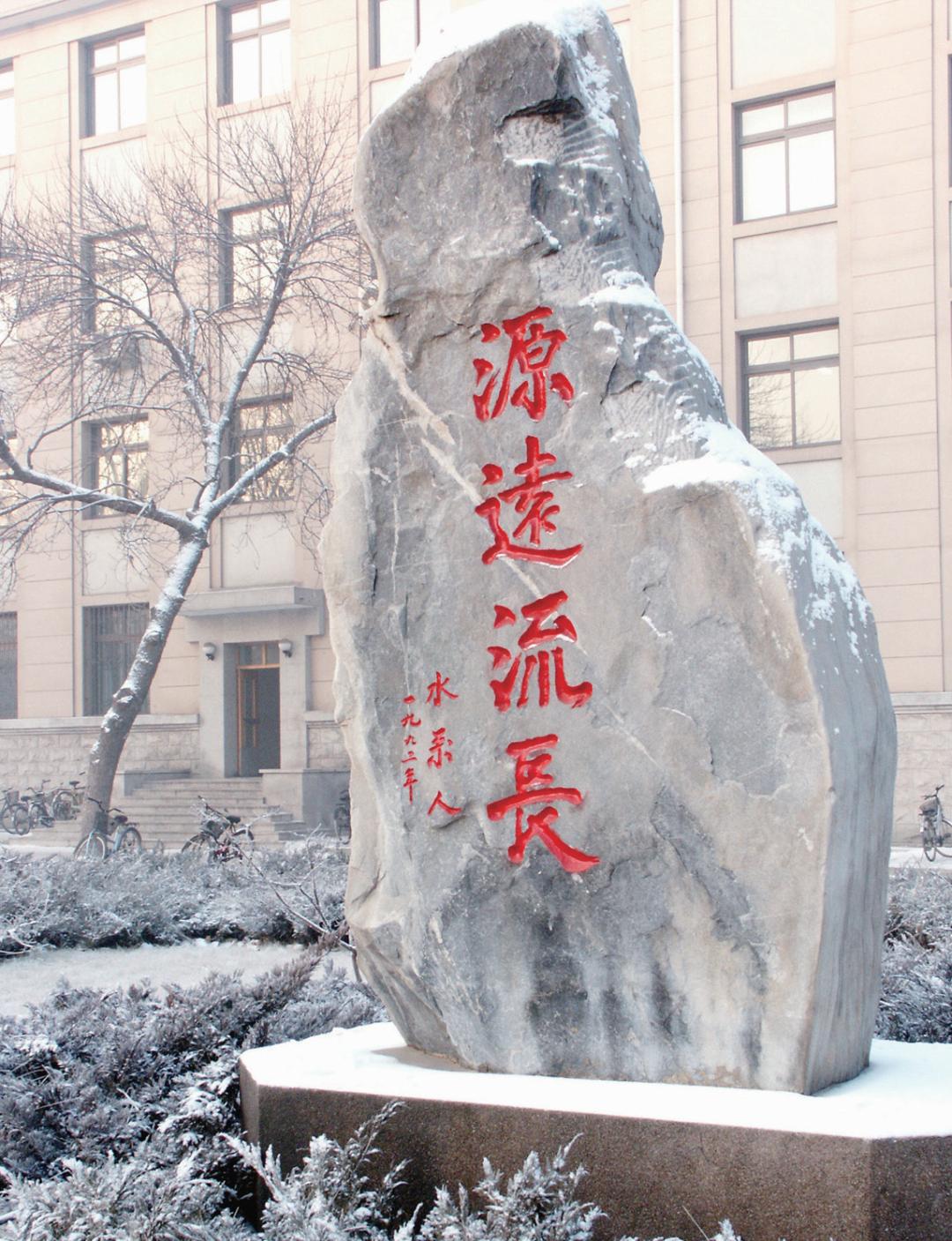 像这样的石头,校园里还有几块,东区主楼后的“耕耘”、“砥砺”,东楼后花园的“鹏程万里”,还有水院的“大禹治水”,西区主楼前的“沧州铁狮”、科研楼前的“拓荒牛”、颐园食堂前的“神农氏”、“发光熊猫”、档案馆前的“三江彩石”、橄榄球场门口的浮雕等,它们像散落的珠子,点缀在校园的每一个角落。石头在中国艺术中,占有极重要的地位,无论园林、绘画还是文学。有人画石入迷,有人爱石成癖,而《红楼梦》中那位至情公子,也原不过是一块石头。