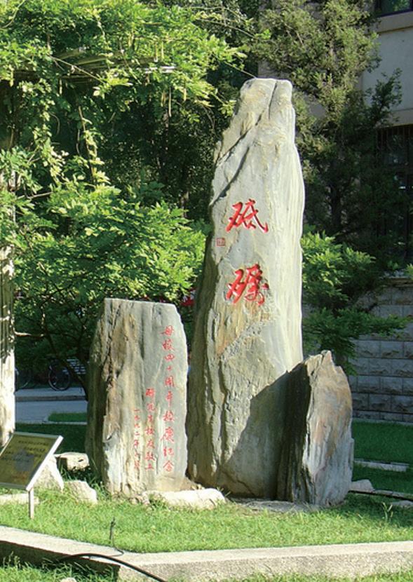 在西区浴室旁边的花园中,还立有一块粉色的泰山石,是山东校友会送来的。因建理学楼,泰山石也不知道搬到哪里去了。“坚如磐石,稳如泰山”亦不过如此,在现代化进程中仍然抵挡不住挖土机的铁骑。