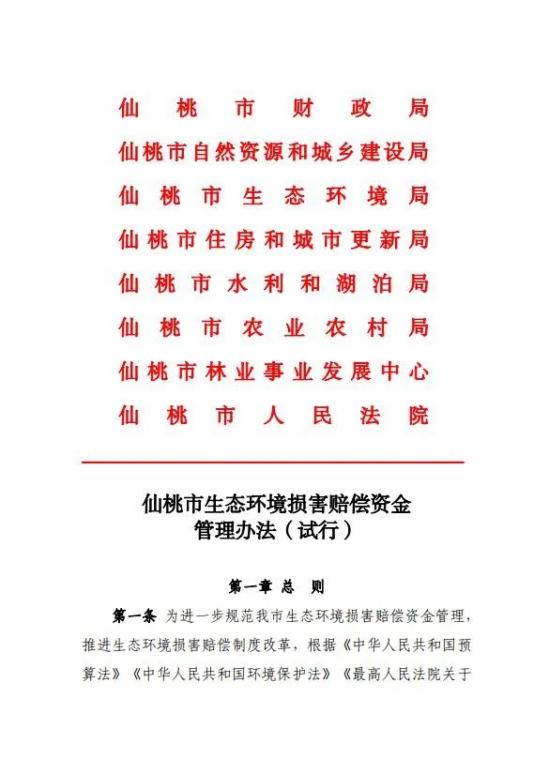 原标题:《八家联签!仙桃市《生态环境损害赔偿资金管理办法》试行~》