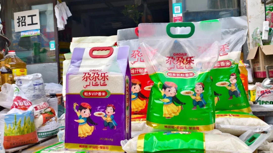 “‘七彩帕乡’这个系列一共有七种颜色,象征着热情、和谐、博爱、温暖、希望,代表着帕乡人民的生活态度。我们的大米有适合做抓饭的、有适合煲粥做米饭的,从2024年10月份收割开始加工生产,现在也生产了有1000多吨,陆续地销往喀什地区各个市场。”张建芳说。