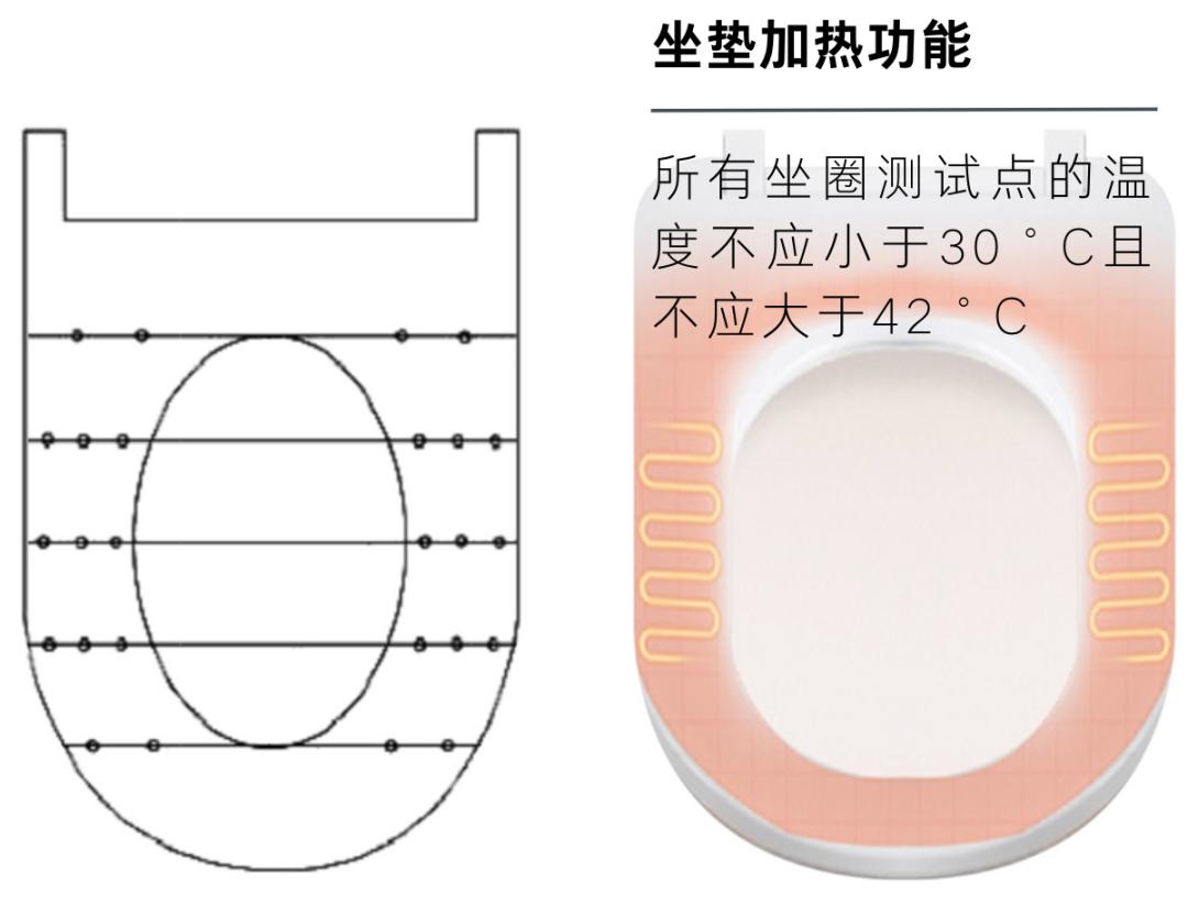 针对坐垫加热功能,标准则对坐圈的温度进行了规范。