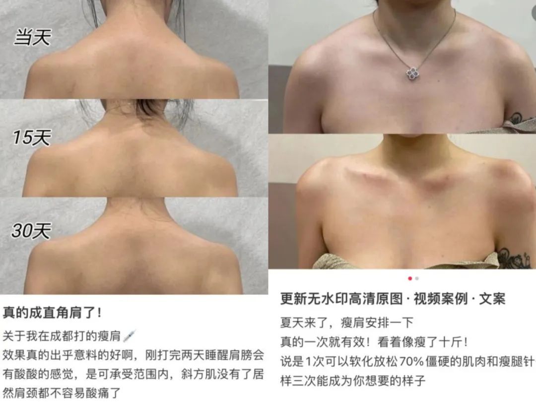 我发现,姑娘们的身材内卷又卷出新高度了,本以为前几年流行的直角肩被说是病以后,就没人盲目追求了,但最近我在小红书上冲浪,看到不少人为了让肩颈线条好看,又开始打瘦肩针了。