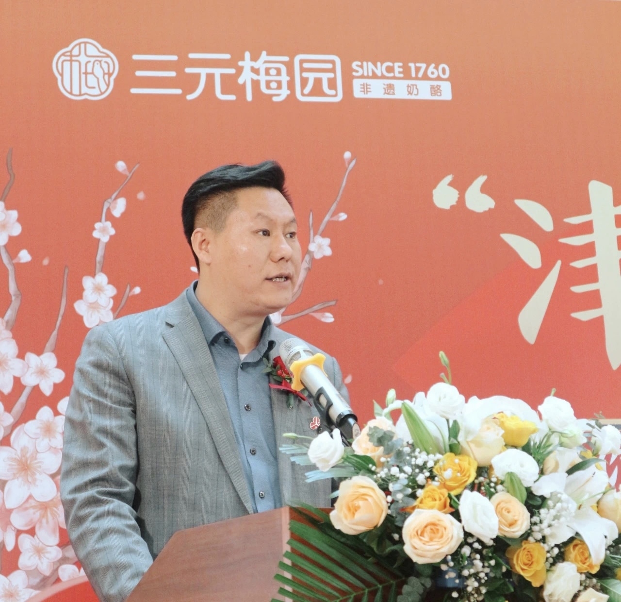 北京奶业协会会长常毅致辞肯定了三元梅园在奶制品行业的贡献与地位,强调京津冀协同发展带来的机遇,期望三元梅园继续发挥品牌优势,满足消费者需求,促进健康美味的奶制品消费,共创美好未来。