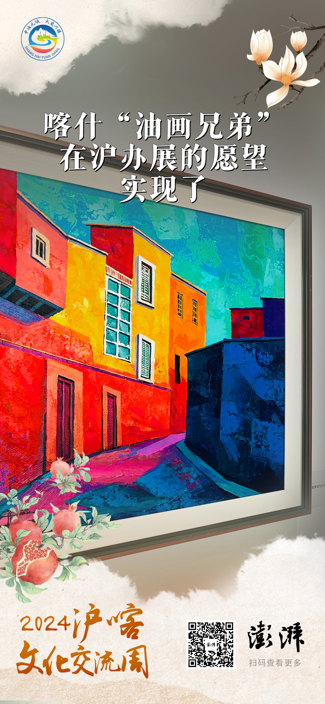 作为文化交流周活动之一,“色彩喀什”油画展展出了来自喀什艺术家“油画兄弟”的52件喀什主题作品、10件上海主题的作品,搭建起沪喀两地文化艺术交流的桥梁。