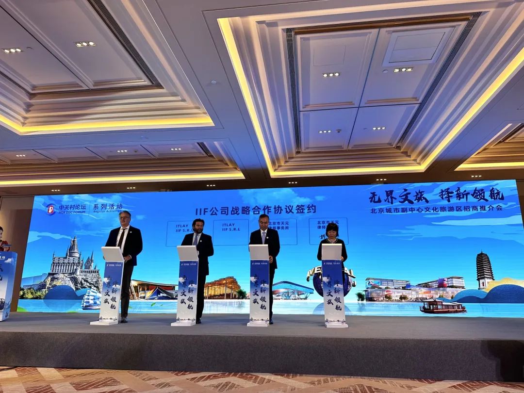 11月22日下午,北京城市副中心文化旅游区举办“无界文旅 择新领航”招商推介会。意大利IIF S.R.L公司与北京市天元律师事务所在现场签约,文化旅游区即将引入又一个国际合作文旅项目,预计整体投资50亿元,打造兼具速度与激情的意大利文化体验和创新综合体项目。