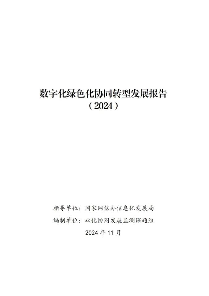 原标题:《数字化绿色化协同转型发展报告(2024)》