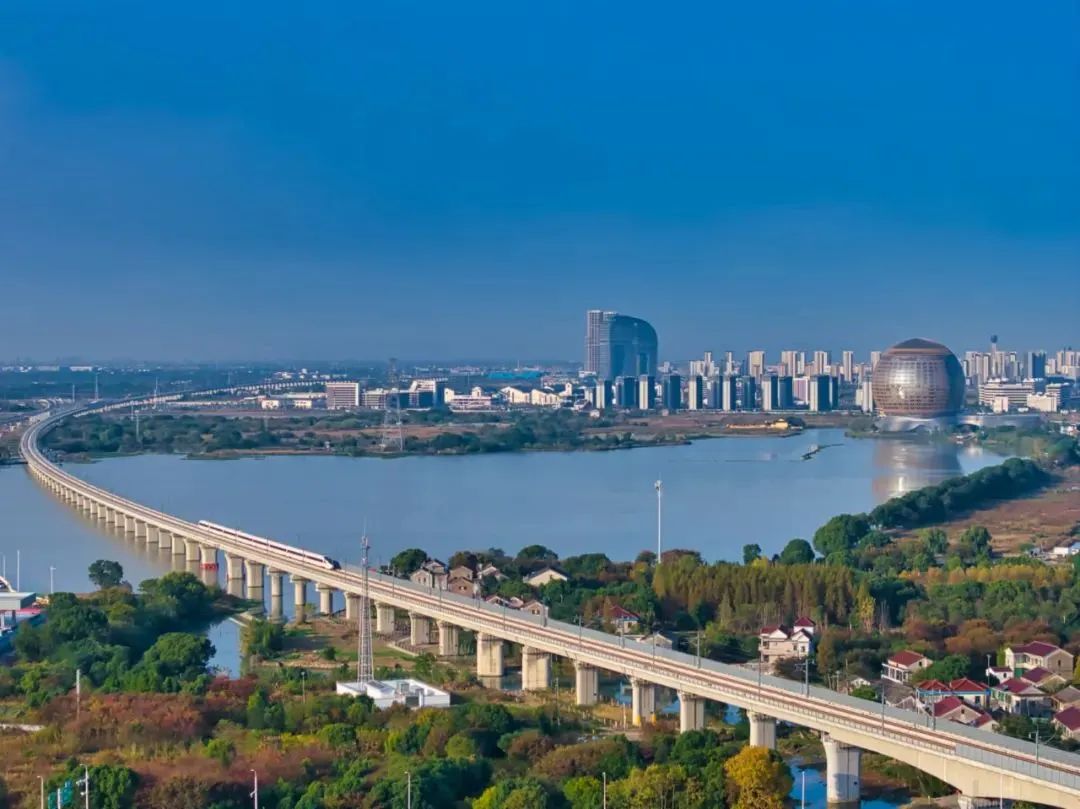 沪苏湖高铁开始试运行沪苏湖高铁是长三角首条连通江浙沪三省市的高铁,由上海虹桥站引出,途经江苏省苏州市,至浙江省湖州市湖州站,线路全长约163公里,设计时速350公里,设上海虹桥、上海松江、练塘、苏州南、盛泽、湖州南浔、湖州东、湖州站等8座车站。