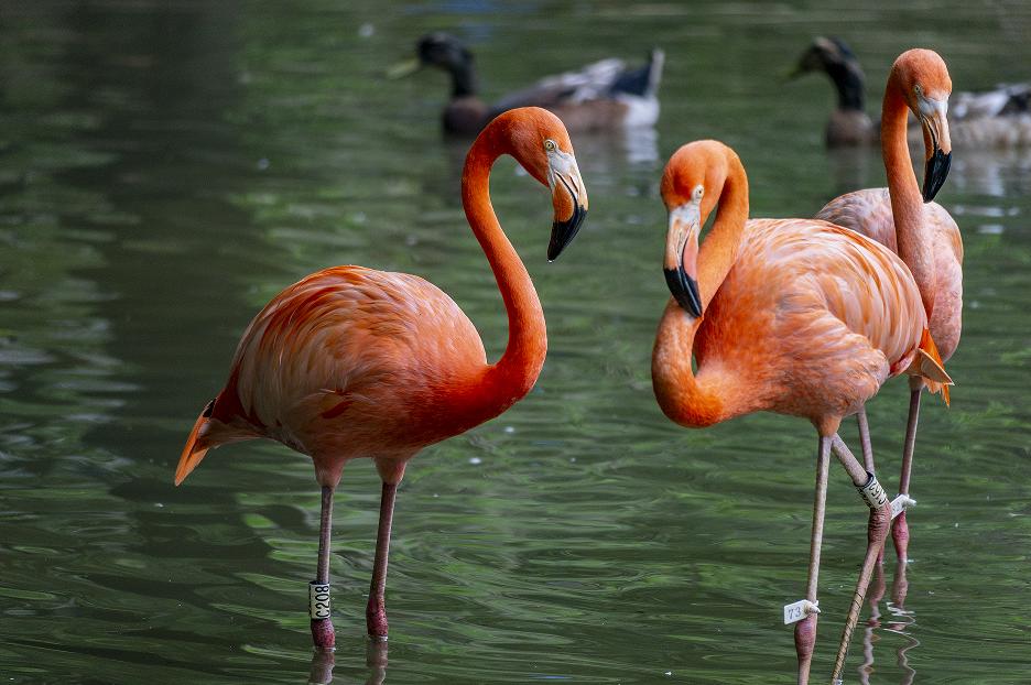 依靠色素显色又被称为化学色,在大自然中,我们看到的大部分颜色都是化学色,化学色会因为色素的流失或改变而褪色或变色。例如,火烈鸟的颜色来源于它的食物滤食藻类和浮游生物,它们含有类胡萝卜素,火烈鸟食用以后,类胡萝卜素的累积会使其羽毛显现出朱红色。一旦火烈鸟停止食用这类食物,它的颜色就会慢慢变回灰色或白色。