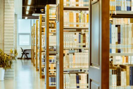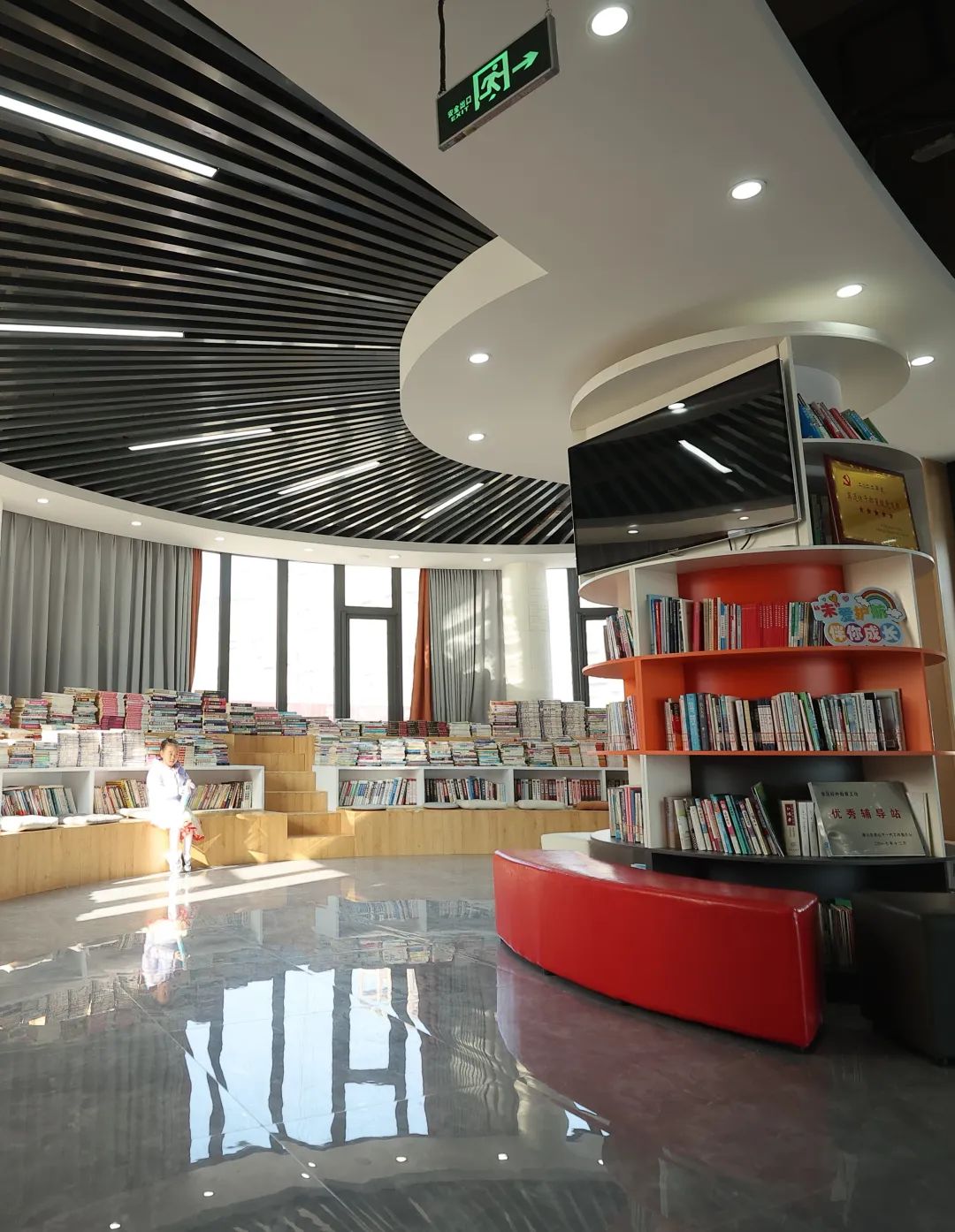 泉山区图书馆书籍群山般错落,又似海潮般起伏