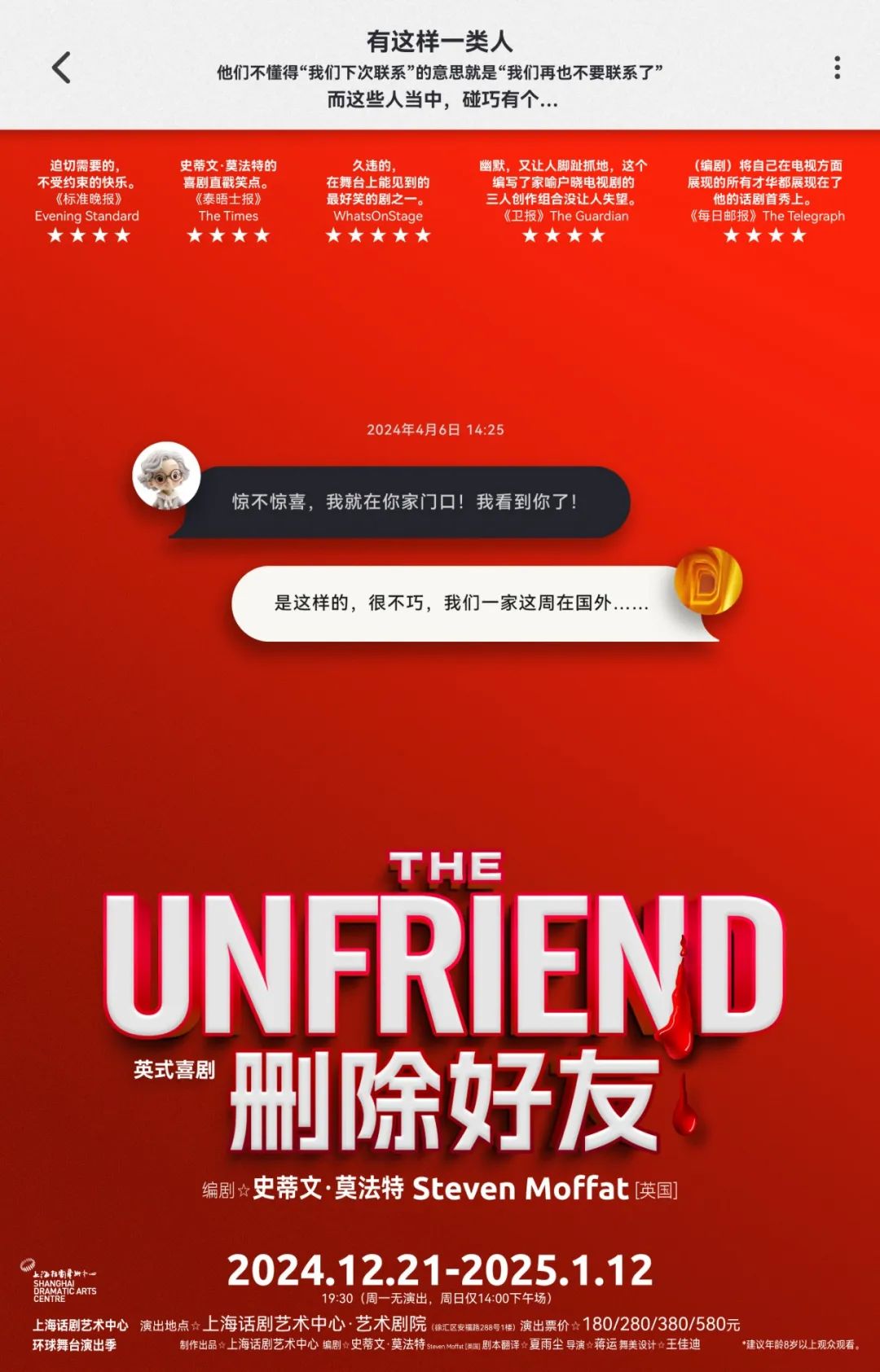 上海话剧艺术中心·环球舞台演出季英式喜剧《删除好友》