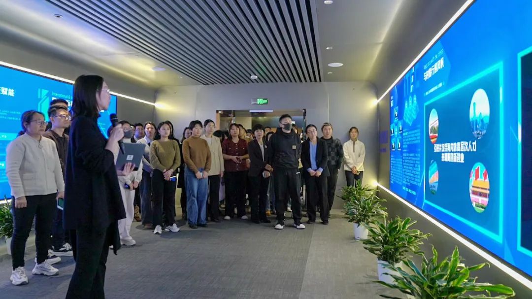 △参观ITEC创新创业园会前,与会人员共同参观了ITEC创新创业园,了解ITEC的发展历程以及企业赋能、人才培育和成果转化等情况,感受朝阳区浓厚的创新创业氛围。