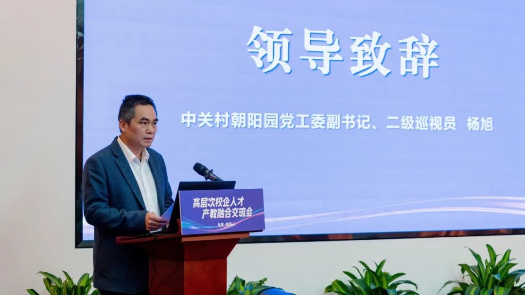 杨旭在致辞中表示,中关村朝阳园是朝阳科技创新的主阵地,是高质量企业云集之地和高层次人才荟萃之地,此次交流会旨在搭建政校企间人才培养、引进、使用的机制和桥梁,推动形成教育与产业双向赋能的积极局面,为推动区域高质量发展提供强大的人才与智力支撑。