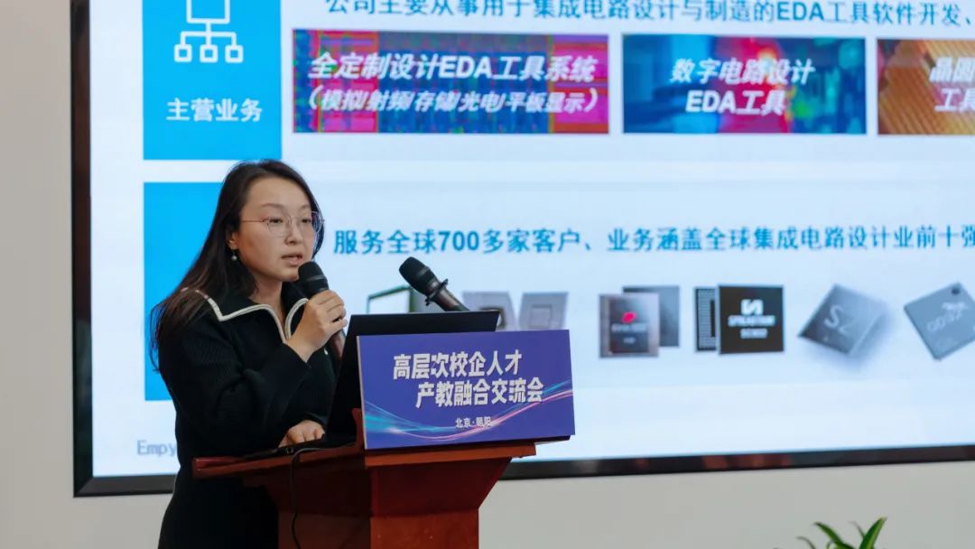 △企业发言组图(左右滑动浏览更多)在企业宣讲环节,北京五八信息技术有限公司、北京水滴科技集团有限公司、北京元气森林食品科技集团、北京华大九天科技股份有限公司、华润双鹤药业股份有限公司5家企业围绕产业发展趋势、应届毕业生用人需求、产教融合情况、校企合作项目等内容进行全面介绍。