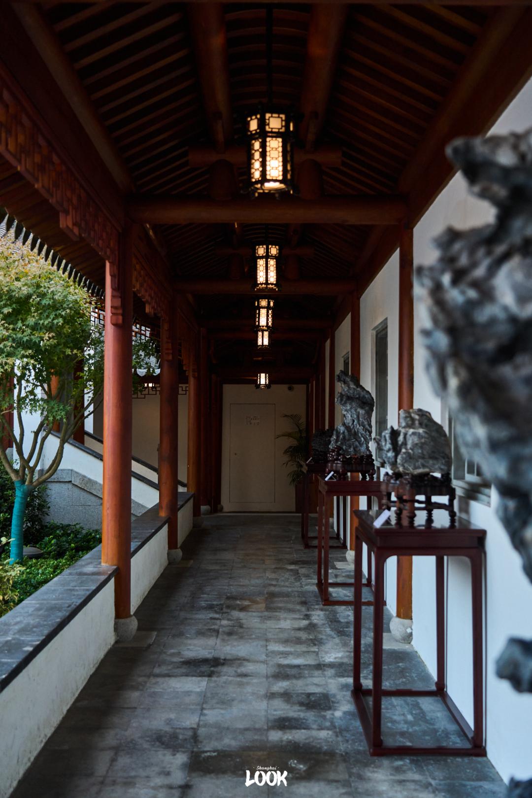 展览「木石双清:江南石供与海派盆景展」在屋顶花园打造成一处江南新古典园林——云林,将奇石与盆景融入其中,展览的室内观赏地则在江南造物馆中庭。