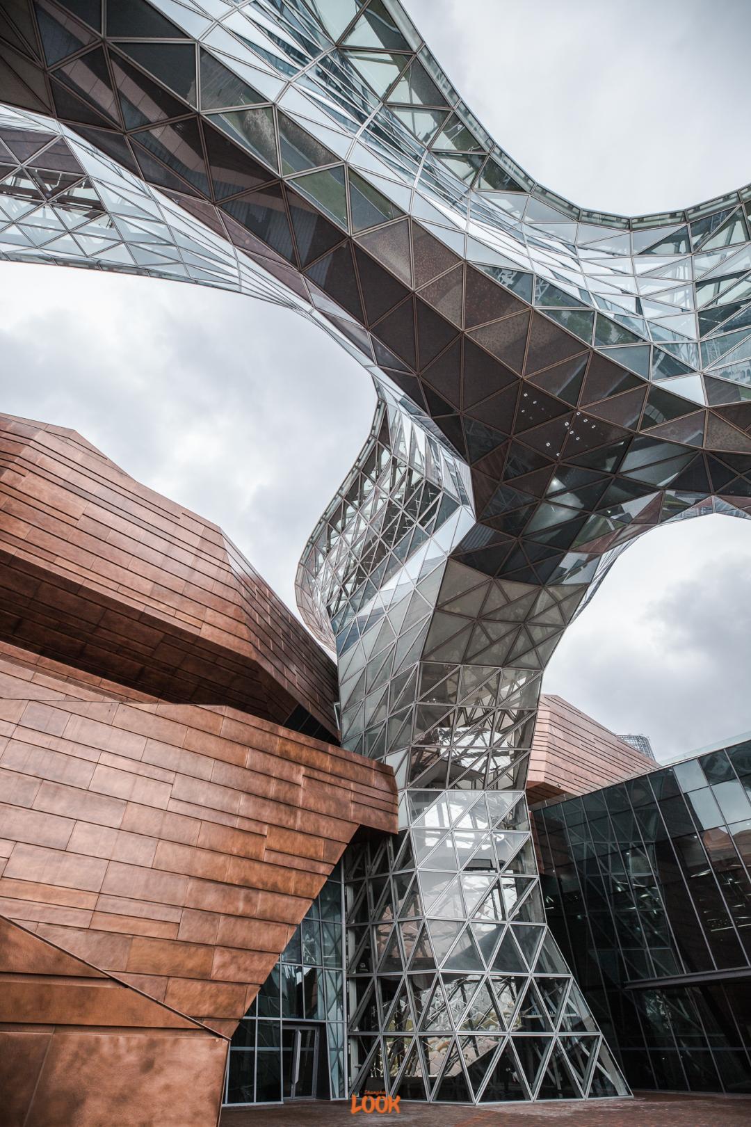 它坐落于黄浦江畔卢浦大桥旁,面积约40000㎡,高度34.8m,地上6层,地下1层,由砖红色的墙和银白色的柱连接而成,大气磅礴。