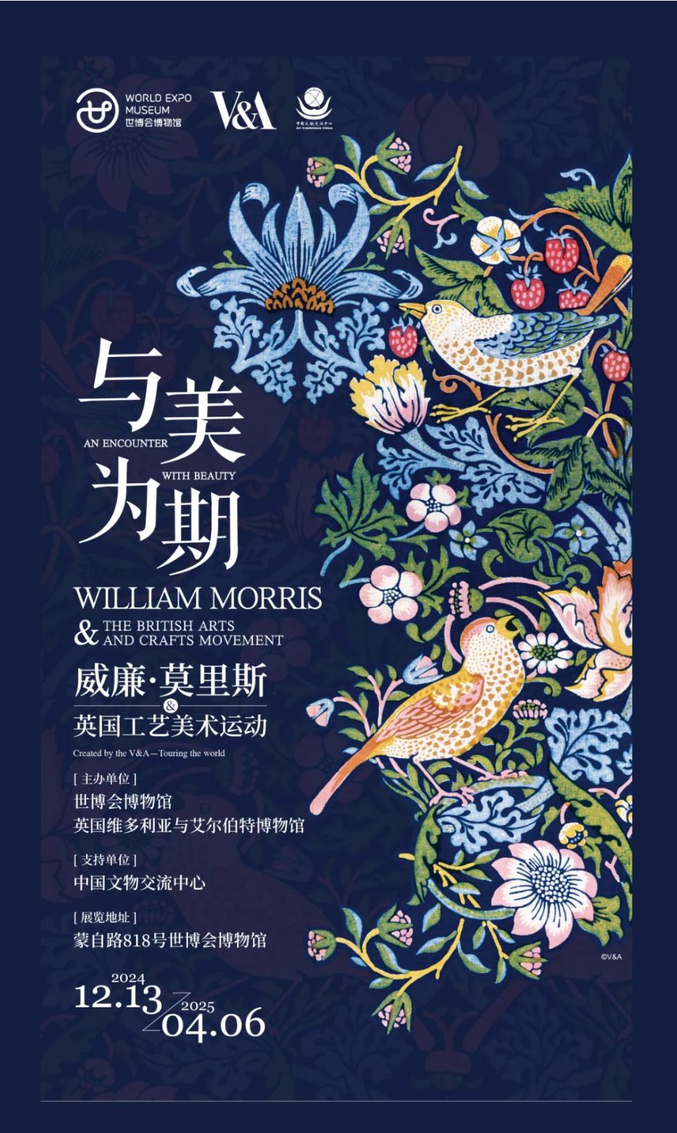 12月13日起上海世博会博物馆联手英国V&A博物馆带来2024年末大展:“与美为期-威廉·莫里斯与英国工艺美术运动”。