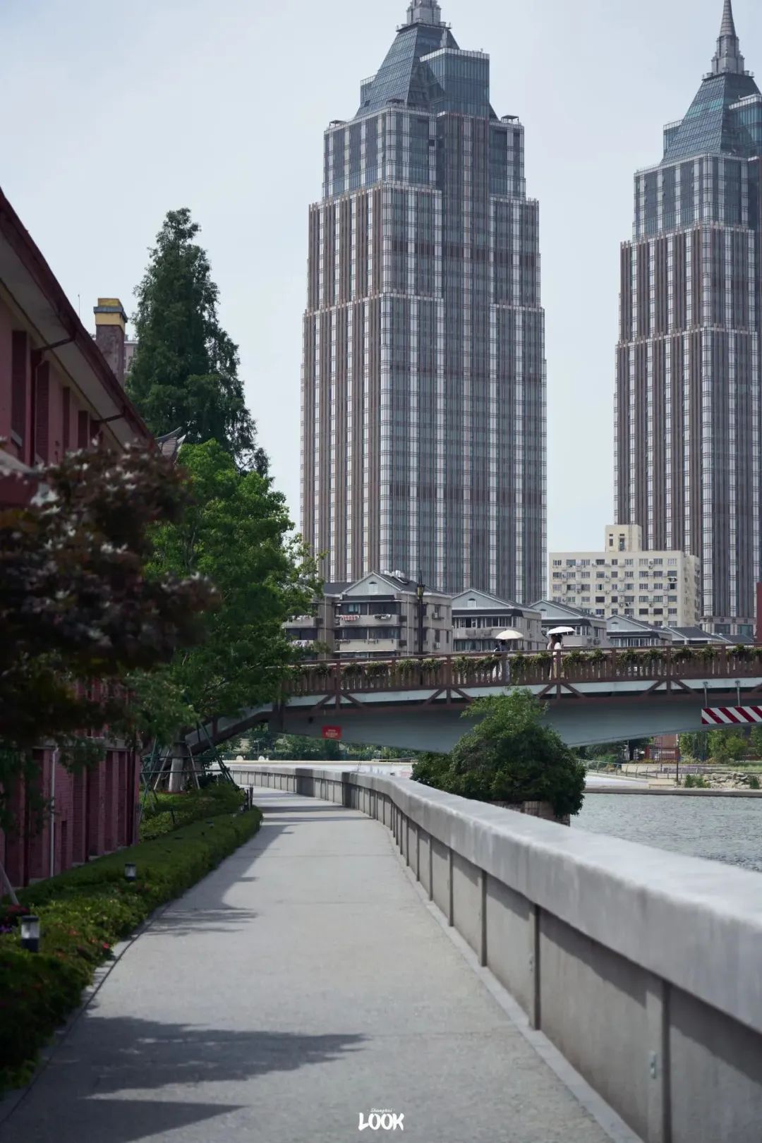 在众多河滨步道中,苏州河华政步道总有一番独特气质。一边是有着看27座中西合璧的历史建筑的华政长宁校区,另一边便是静静流淌的苏州河。