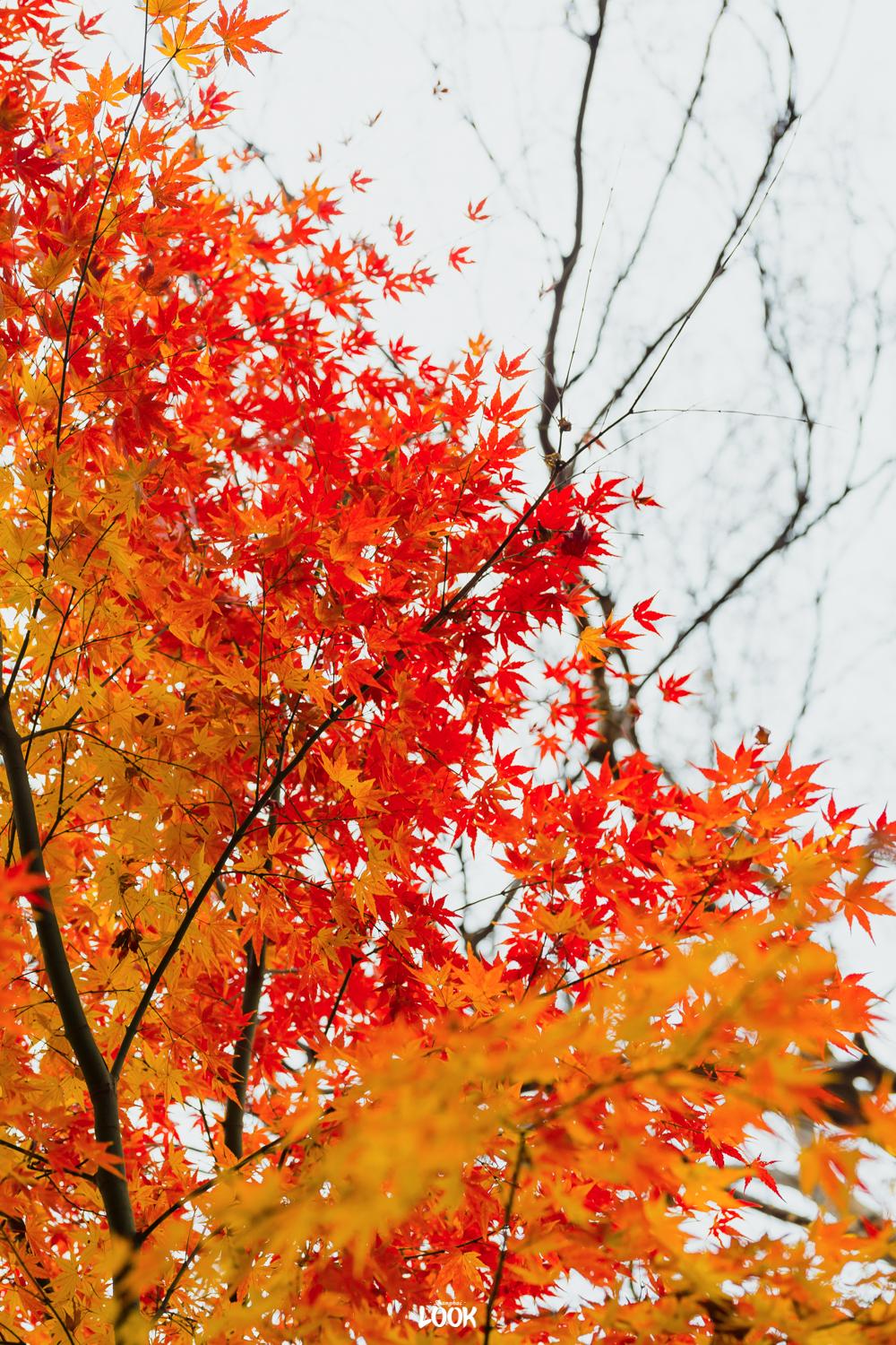 中山公园的枫叶,大多集中在绿廊与水杉林附近。园中有一棵百年青枫,青红渐橙,这个季节所有的颜色,差不多都在这儿了。