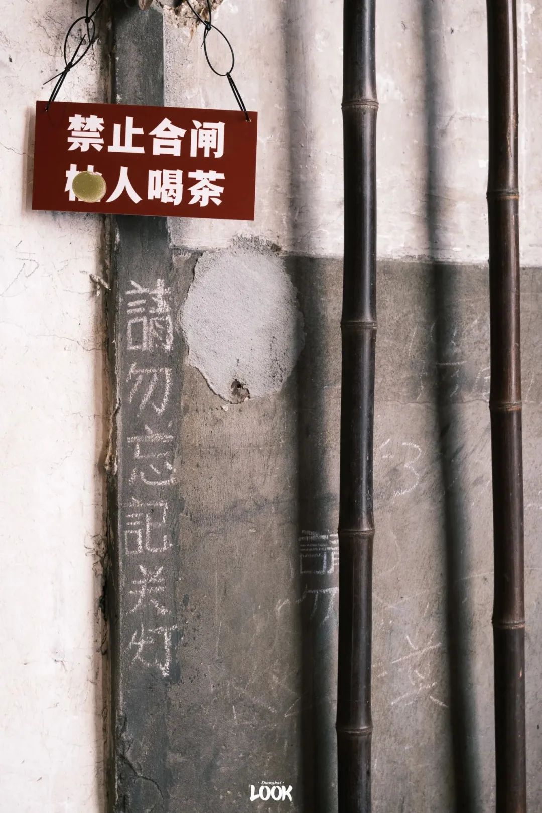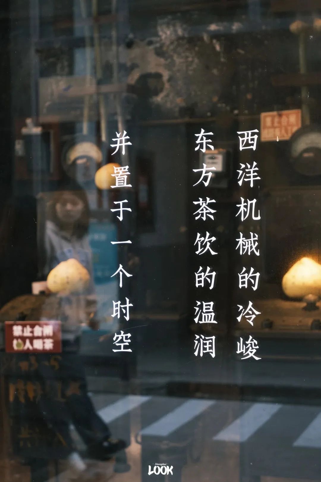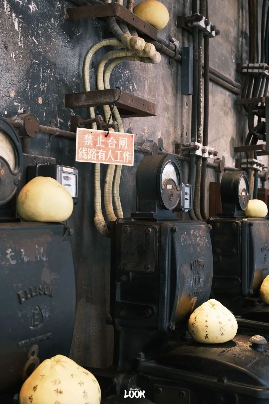 这家茶馆的前身是M50老发电站,店内基本保留了原先发电厂的所有物件,整体风格非常的工业风。机器上还有上世纪70年代工人们手写的字体,因在字库里找不到具体字体名,因此命名为合闸体。