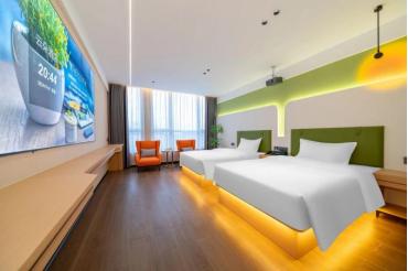 按国际四星级标准装修共有智能家居、零压床等各类客房166间