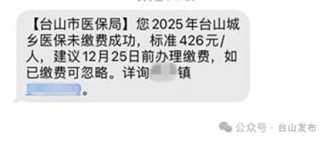 2025年度台山市居民医保个人缴费标准为每人每年426元