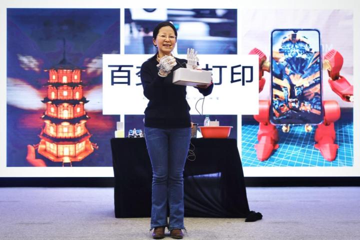 杭州市保俶塔实验学校信息组林滢老师带来了3D打印分享,她展示了多种材料和技术如何快速地将创意变为实物。比如,一个简单的粉笔夹,仅需45分钟即可完成打印,这不仅保护了教师的手部皮肤,还展示了3D打印技术在日常生活中的应用潜力。