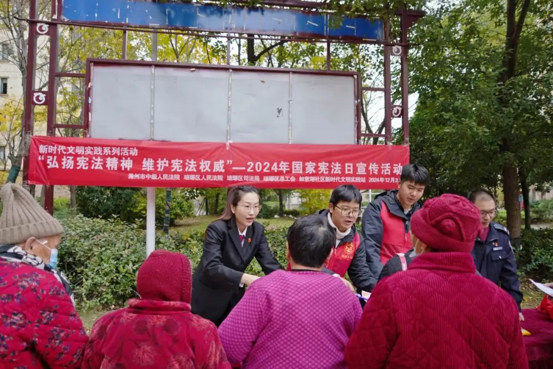 滁州中院、琅琊法院12月3日,滁州市中级人民法院联合琅琊区人民法院深入如意湖社区开展“宪法进社区”活动,为广大群众送去了一场丰盛的“法治大餐”。
