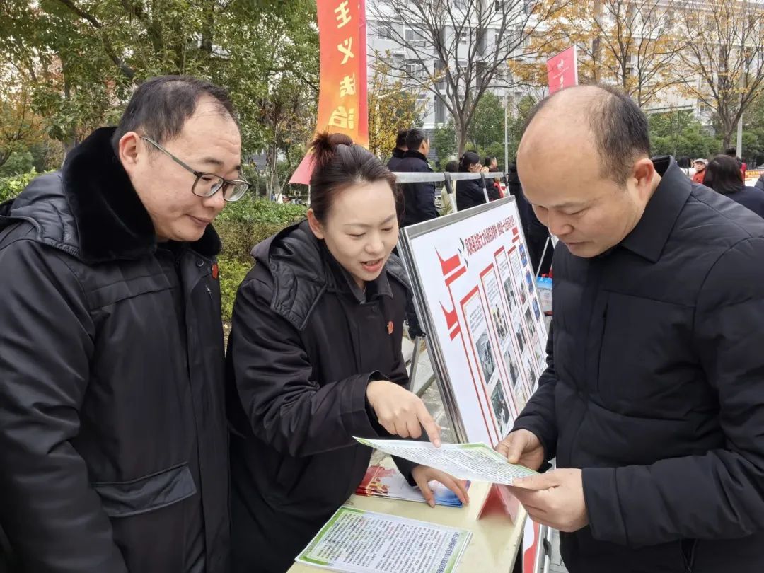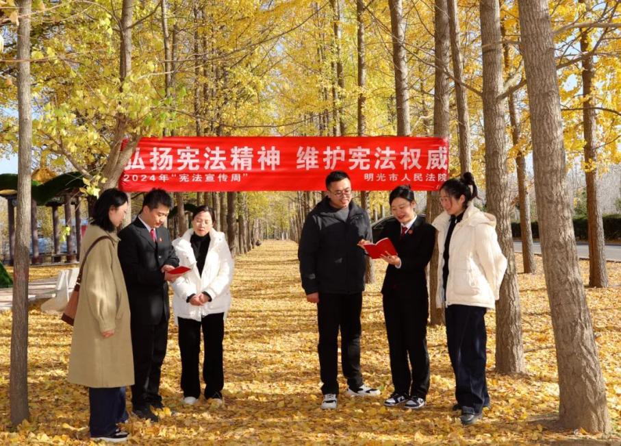 明光法院11月29日,明光市人民法院干警来到淮河生态环境司法保护基地,通过发放宣传资料、互动答题等方式,向群众宣传宪法,增强群众尊法、学法、守法、用法的意识。