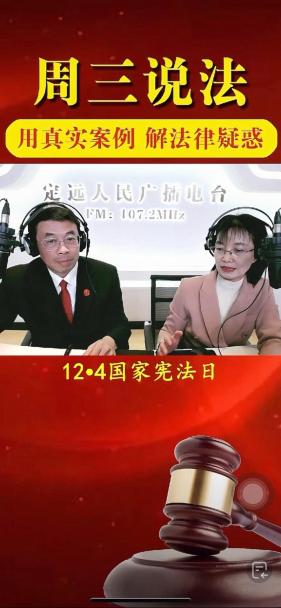 定远法院“观众朋友大家好,欢迎来到周三说法直播间……”,12月4日下午,定远法院党组书记、院长樊朝勇在周三说法直播间再次开启直播,为观众们讲解宪法内容,科普法律知识。