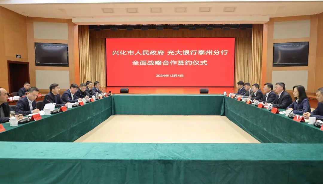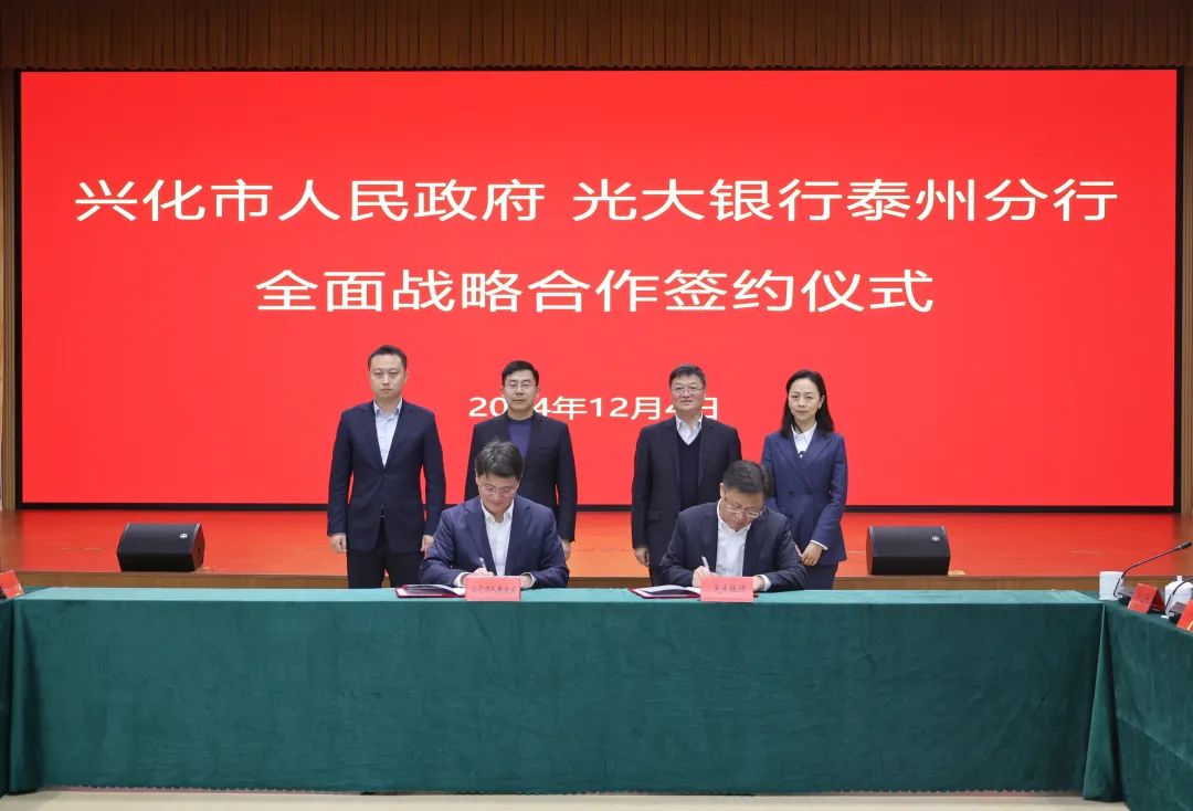 陈锋剑介绍了兴化产业发展、乡村振兴、文旅融合、城市更新等方面情况,希望光大银行在提供优质金融服务的同时,依托光大集团大健康、环保等其他业务板块,进一步拓展深化双方合作,全力支持光大银行在兴化发展,携手谱写政银合作共赢的新篇章。彭骏表示,光大银行将积极践行金融“五篇大文章”,重点加大对兴化市重大项目、战略性新兴产业、城市更新等方面的支持力度,发挥光大集团优势,引入租赁、基金、证券等金融板块资源,提供全方位金融服务,为兴化经济社会高质量发展贡献光大力量。