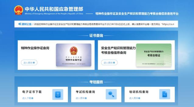 方法二:登录应急管理部“特种作业操作证及安全生产知识和管理能力考核合格信息查询平台”(网址:http://cx.mem.gov.cn/)进行查验。