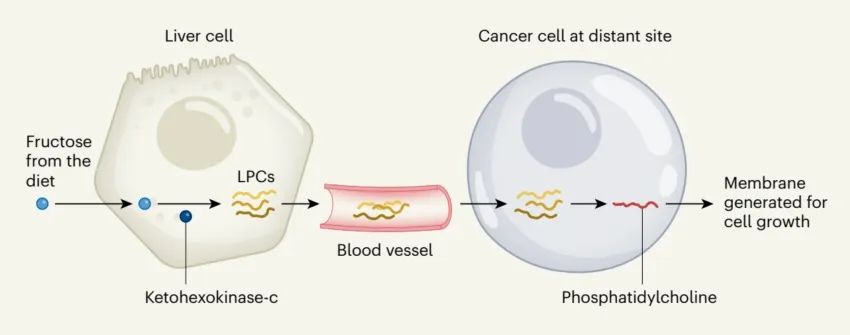 圣路易斯华盛顿大学科研团队在《自然》杂志发文,研究者们发现,虽然果糖能够促进模式动物中多种癌症的进展,但癌细胞本身并不直接利用果糖。在这一过程中,首先由肝脏将果糖代谢为脂质,这些脂质通过血液循环送达癌细胞,再被癌细胞利用成为后续繁殖壮大的养分。