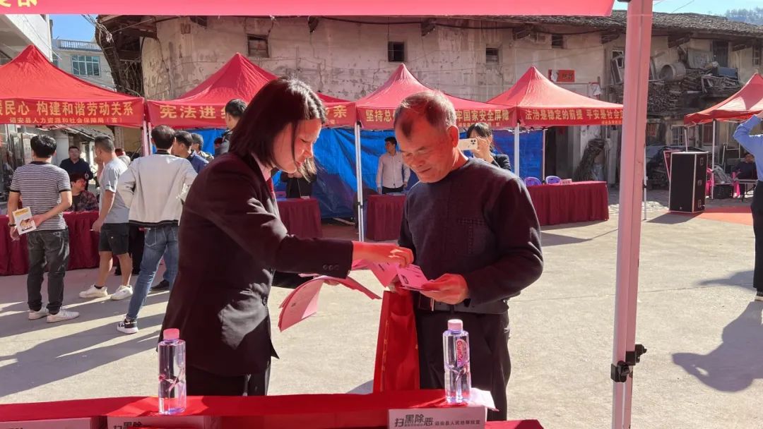 12月4日,诏安法院联合县司法局、县检察院、县农业农村局等单位在诏安县秀篆镇参加诏安县2024年“宪法宣传周”启动仪式暨“12·4国家宪法日”集中宣传活动。活动现场,诏安法院干警围绕宪法的主要内容、宪法的地位以及宪法赋予公民的主要权利等方面,向群众进行了详细解读,并向他们发放了宪法相关的宣传资料。