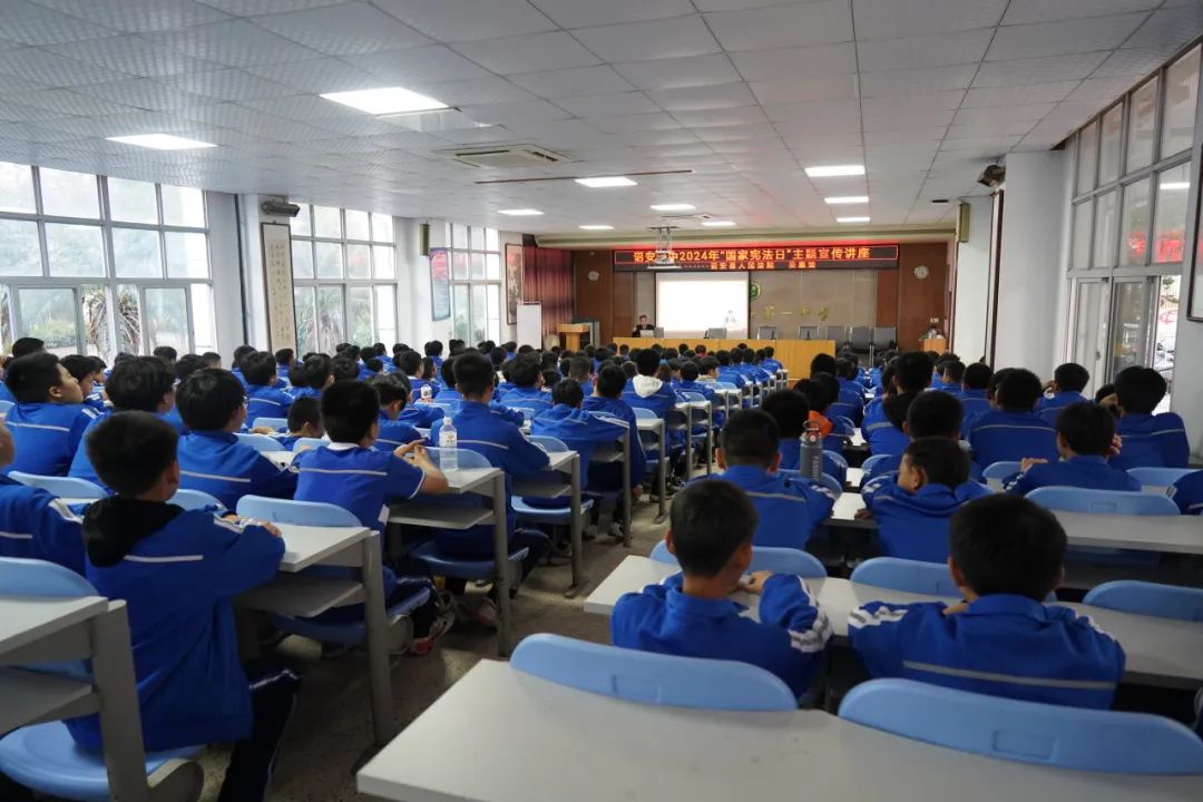 “法是反映统治阶级意志,由国家制定或认可并以国家强制力保证实施的行为规范体系……”,12月4日下午,诏安法院干警到诏安一中为学生们上了一堂生动的法治课。结合学生们的身边事,通过以案释法、现场互动等形式,把晦涩的法律条文转化为易懂的知识。课堂上,同学们聚精会神,积极参与问答。
