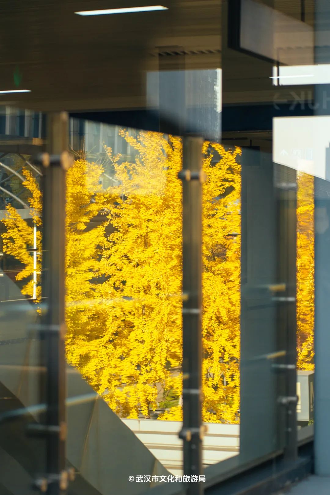 地铁旁的银杏瀑布