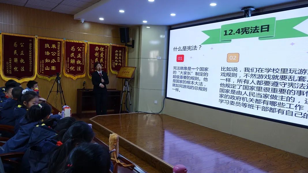 2024年12月4日,在第十一个国家宪法日来临之际,渭滨法院高新法庭迎来了一批特殊的“客人”,他们就是来自宝鸡市高新一小的师生,受邀走进人民法院,近距离了解法院工作,感受司法阳光。