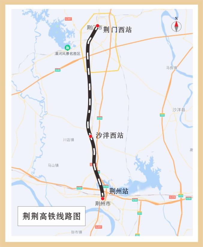 荆荆高铁北起沿江高铁武汉至宜昌段荆门西站,南至汉口至宜昌铁路荆州站,全长77公里,设计时速为350公里,共设荆门西站、沙洋西站、荆州站3座车站,其中荆门西站、沙洋西站为新建车站。自2020年9月开工建设以来,各参建单位和广大建设者科学有序推进工程建设,建成了江汉运河特大桥、荆州站改扩建等重点工程,确保了线路如期开通。项目开通运营前,铁路部门精心组织相关单位,严格落实各项规定和标准,对荆荆高铁各专业设备进行了联调联试、检测验收和安全评估,对轨道状态、弓网性能、列车控制、通信信号系统等进行了综合优化调整。目前,该线路满足高铁安全、稳定运营要求,具备开通运营条件。