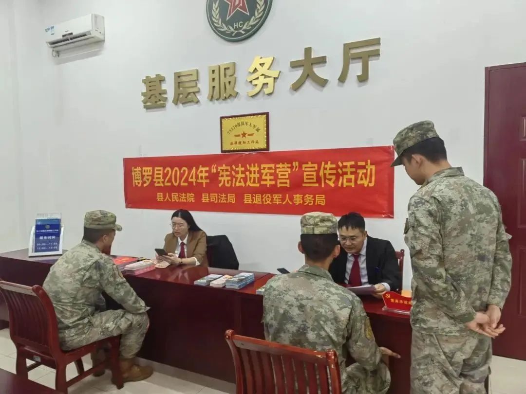 12月5日下午,博罗县人民法院、博罗县司法局、博罗县退役军人事务局在75220部队通过专题法治讲座和一对一咨询的方式开展“宪法进军营”普法宣传活动。